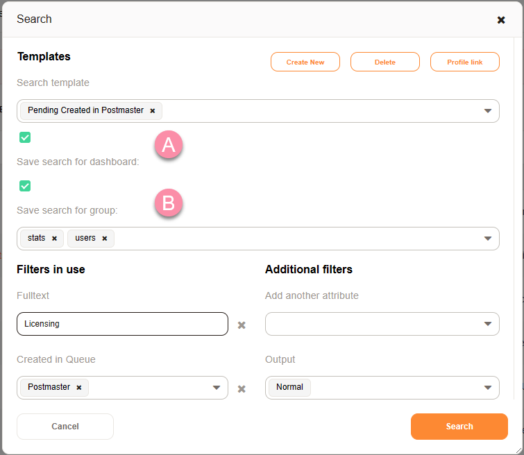 Search Profiles are an integral part of everyday life with Znuny. Until now, your profiles have been private and only accessible via the search function or toolbar. This add-on allows you to share these newly created search profiles more efficiently than ever so that they are selectable for other users in the ticket search module or directly on the dashboard.